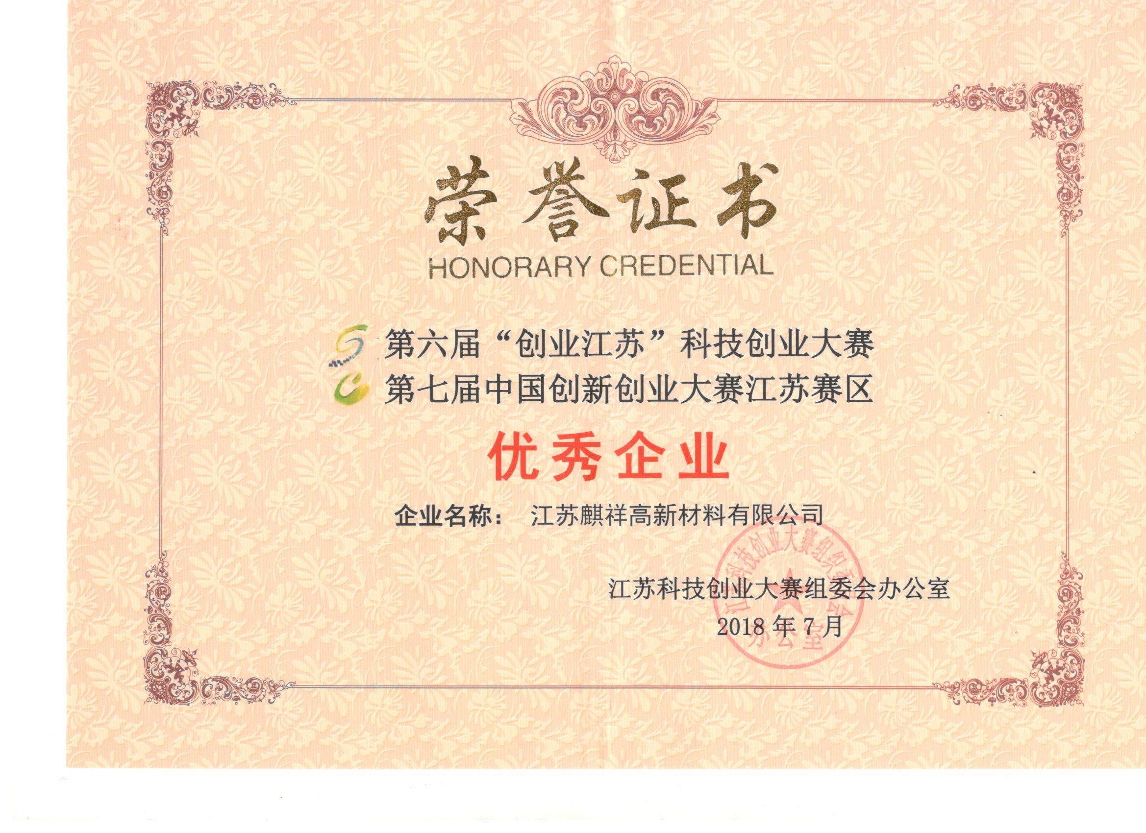 江苏开云足球,开云足球(中国)荣获全国创新创业大赛(新材料行业决赛)成长组 “优秀企业”奖