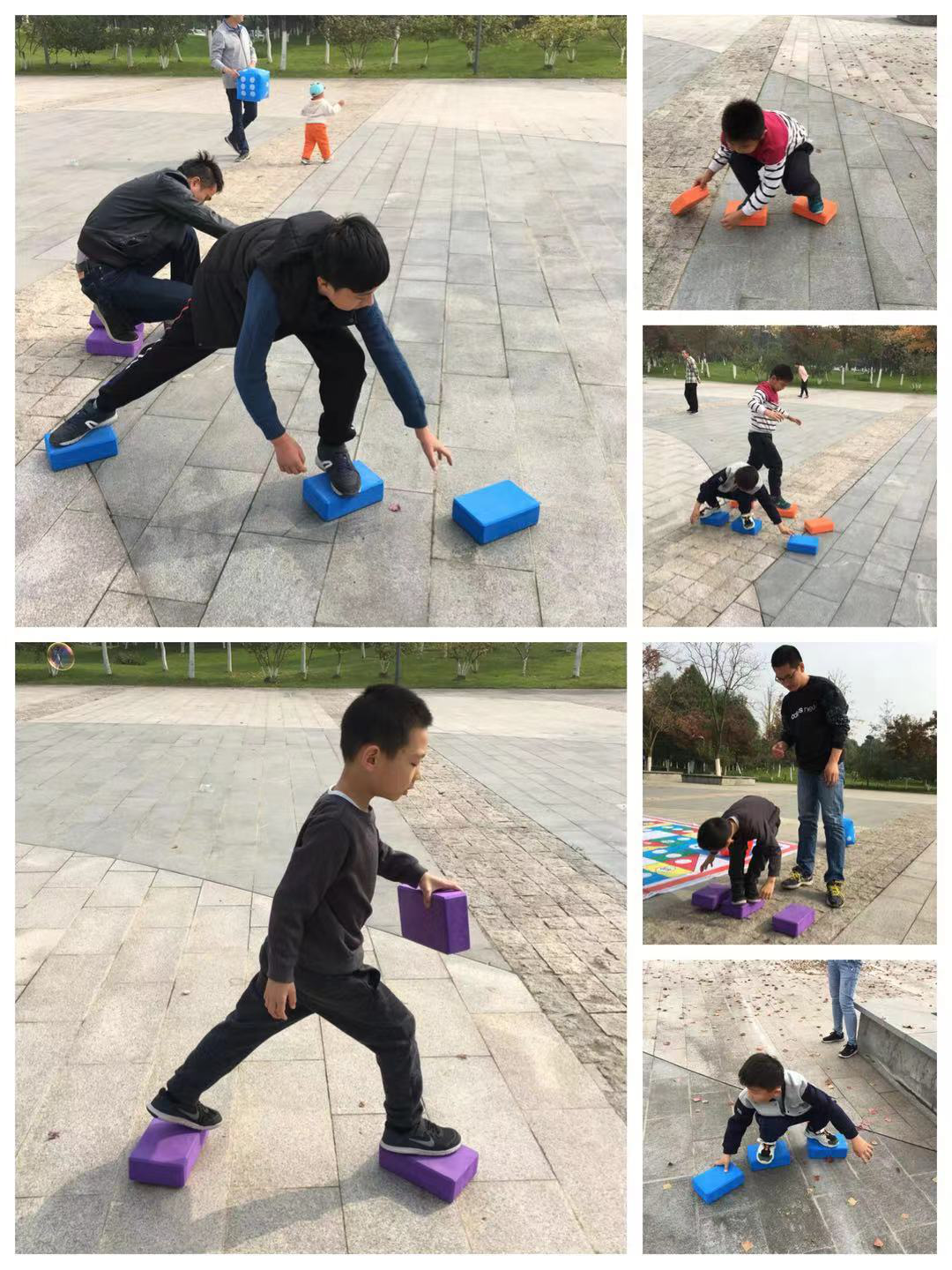 “摸石过河”,孩子的协调性似乎比爸爸妈妈们好的多