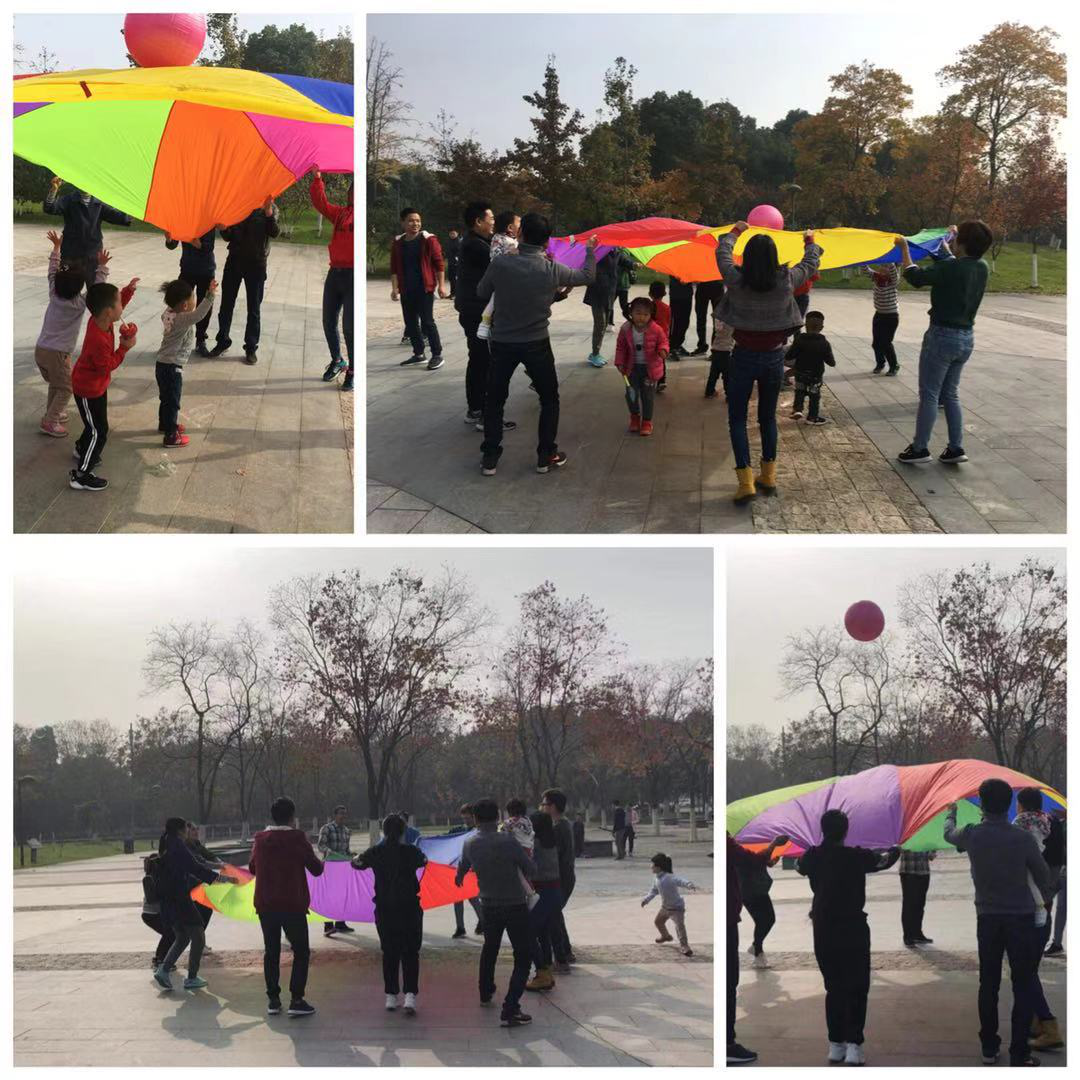 彩虹伞,看似简单,却要求大人们配和默契。孩子们也在伞下玩的不亦乐乎