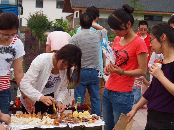 Come on,户外烧烤嗨起来,小伙伴们争先恐后的当“烤夫”,大家边烤边吃,还有啤酒、饮料,免费畅饮哦!