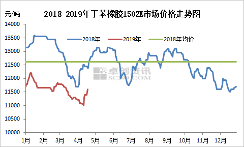 本周国内乳聚丁苯橡胶主流市场报价重心走高。截至周四,山东地区齐鲁丁苯1502E主流报价11600元/吨,较上周收盘价格涨5.45个百分点。本周山东地区齐鲁丁苯1502E均价11440元/吨,环比上周均价涨幅3.25%,同比去年同期走低8.08%。周内,销售公司对丁苯橡胶供价累计上涨300元/吨,然相关产品沪胶、原料丁二烯走势均偏弱,操盘商对丁苯市场行情预期操盘商难言乐观,谨慎思路明显,多试探性报盘,实单商谈。然终端用户买气平淡,业者整体出货存有压力,行情走势僵持。
