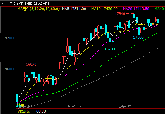 图2 沪锌主力合约1605日均K线图