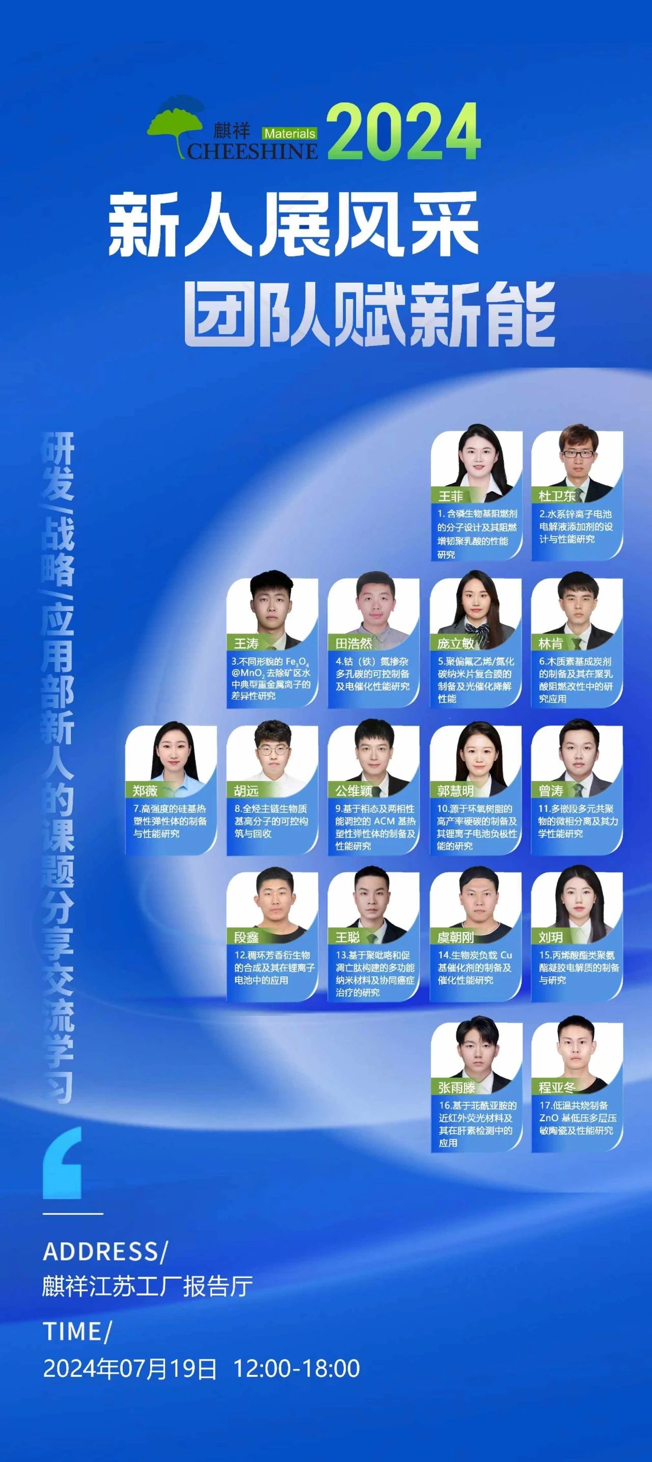 为激发新人的科研热情,促进开云足球,开云足球(中国)新材料内部创新,公司迎来了一场别开生面的学术盛宴。这次活动以“新人展风采-团队赋新能”为主题,在不涉密前提下,分享新人硕博的研究框架,激发创新思维,为公司的未来高速发展注入源源不断的新动力。