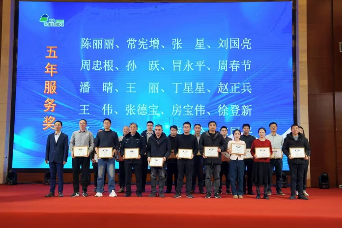 随后,“2024年度表彰仪式”将大会的气氛推向了高潮。伴随着激昂的音乐,一个个闪耀的名字被宣读出来。本次表彰设置了众多奖项,包括劳动能手奖、最佳进步奖、优秀员工奖、优秀管理者奖、五年服务奖、十年服务奖、优秀党小组奖、优秀党务工作者奖、优秀党员奖和突出贡献奖等。