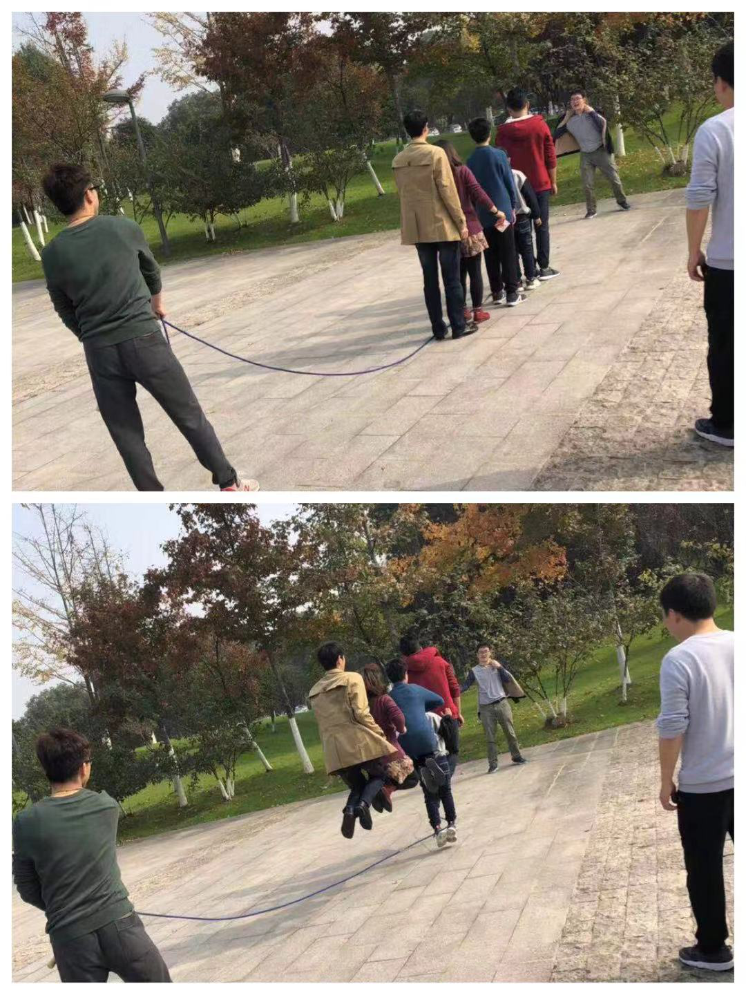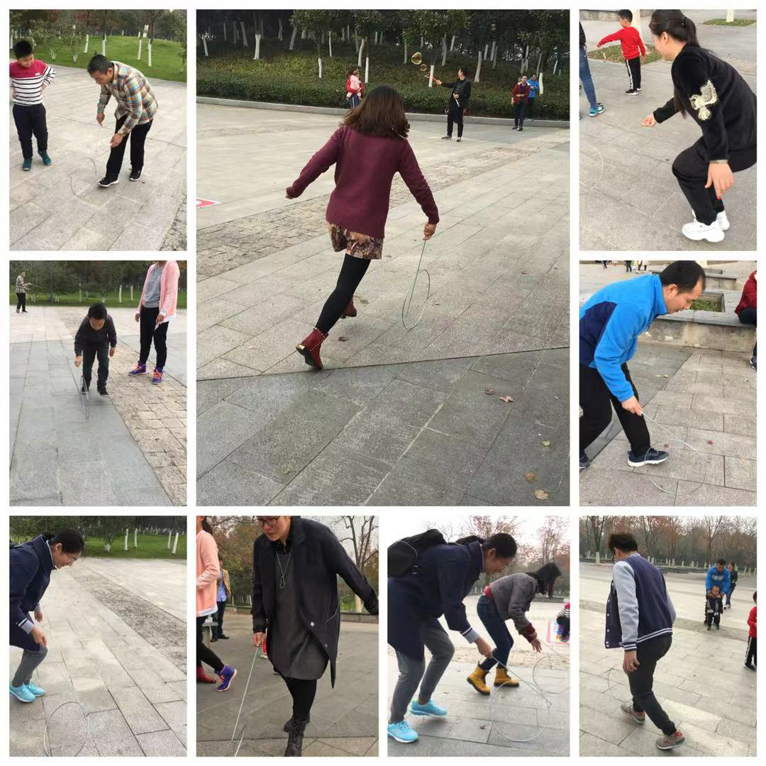 爸爸妈妈们玩起了跳绳,仿佛又跳回了童年美好的记忆里