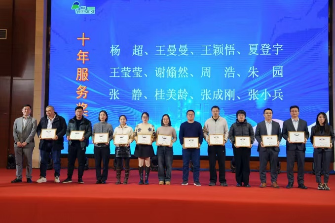 随后,“2024年度表彰仪式”将大会的气氛推向了高潮。伴随着激昂的音乐,一个个闪耀的名字被宣读出来。本次表彰设置了众多奖项,包括劳动能手奖、最佳进步奖、优秀员工奖、优秀管理者奖、五年服务奖、十年服务奖、优秀党小组奖、优秀党务工作者奖、优秀党员奖和突出贡献奖等。